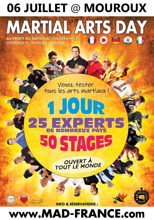 Pour la première et unique fois en France, ne ratez surtout pas le MARTIAL ARTS DAY : Journée caritative de partage martial où quel que soit votre age et votre niveau, vous pourrez tester de nombreuses disciplines martiales et de santé.